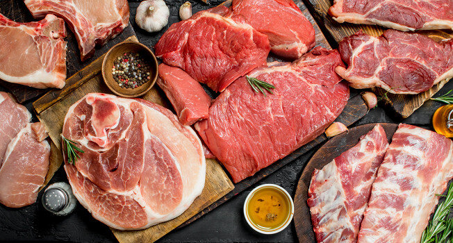 Кусок мяса должен иметь однородный цвет и свежую жировую прослойку. Например, свежая свинина имеет светло-розовый оттенок, а баранина должна быть темного, почти вишневого цвета.