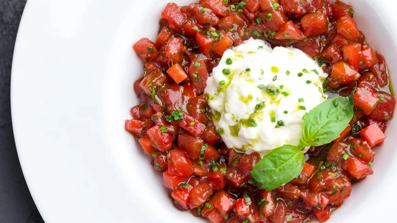 Ищете легкое, оригинальное и освежающее блюдо на лето? Томатный тартар — это то, что вам нужно. Эта закуска выглядит изысканно и при этом легко готовится. Сладкие спелые помидоры, хрустящий фенхель и освежающая мята создают идеальное сочетание для жарких дней. Блюдо не требует термической обработки, сохраняя все полезные свойства ингредиентов.
