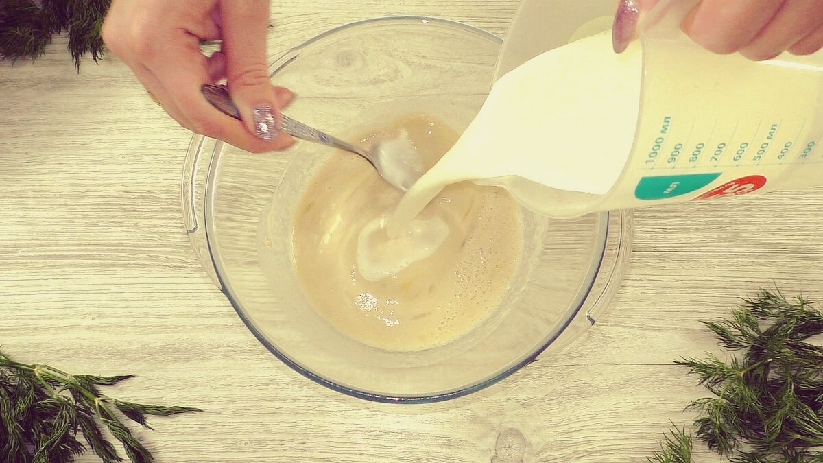 - Для теста: 300 мл кефира, 100 мл молока, 25 г прессованных дрожжей, 2 яйца, 125 мл растительного масла, 2 ст. ложки сахара, 1.3 ч. ложки соли и 750–800 г муки.