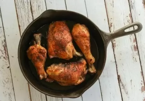 - Ингредиенты: 700 г куриных бёдер или голеней, 2 ст. л. растительного масла, соль и чёрный молотый перец по вкусу, 1 ч. л. паприки, 2 зубчика чеснока и свежая зелень для подачи. Предпочтительно использовать охлаждённое мясо для сохранения сочности.