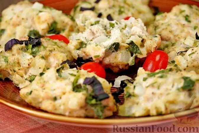 - Куриные котлеты, запеченные в духовке: Эти котлеты порадуют своей нежной текстурой. Для их приготовления мелко нарезанное куриное филе смешивается с луком, зеленью и сметаной. Для скрепления добавляются манная крупа и яйцо. Запекание делает котлеты более полезными по сравнению с жареными на сковороде.