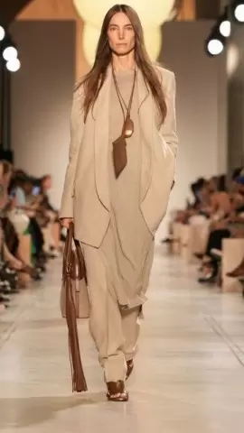 При выборе костюма важно обращать внимание на ткань, которая должна сочетать прочность и приятность на ощупь. Идеальны плотный хлопок, мягкая шерсть или костюмный шелк. Цветовая палитра этого сезона — спокойные оттенки: молочный, серый, пудровый и графитовый.