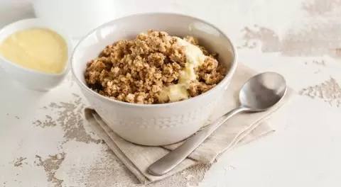 Шаг 4: Пока готовится каша, займитесь соусом. Взбейте желтки с сахаром до образования светлой массы. В отдельной кастрюле доведите сливки до кипения, добавьте ваниль и корицу. Уберите с огня и, помешивая, постепенно влейте желтки с сахаром. Поставьте на очень слабый огонь или водяную баню, продолжая помешивать, пока масса не загустеет, но не доводите до кипения. Процедите и остудите.
