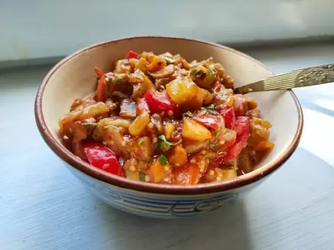 С баклажанов отожмите лишнюю жидкость и тоже обжарьте их. Далее поочередно добавляйте в сковороду цуккини и сладкий перец, завершая помидорами. Быстро обжарьте все овощи, затем уменьшите огонь до минимума. Важно, чтобы на дне образовалась румяная корочка — она добавит блюду насыщенного вкуса. Если помидоры недостаточно сочные, можно добавить немного кипятка или ложку томатной пасты для лучшего результата.