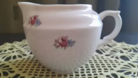 Едва успев оценить новинку, в интернет-пространстве появился еще один сливочник с розочками, который также привлек внимание. Изготовленный в 1955 году на заводе Дулёво, он стал настоящей находкой благодаря своей уникальной форме. Увы, название сервиза выяснить не удалось, но существует мнение, что оно связано с хлопком, что лишь добавляет загадочности.