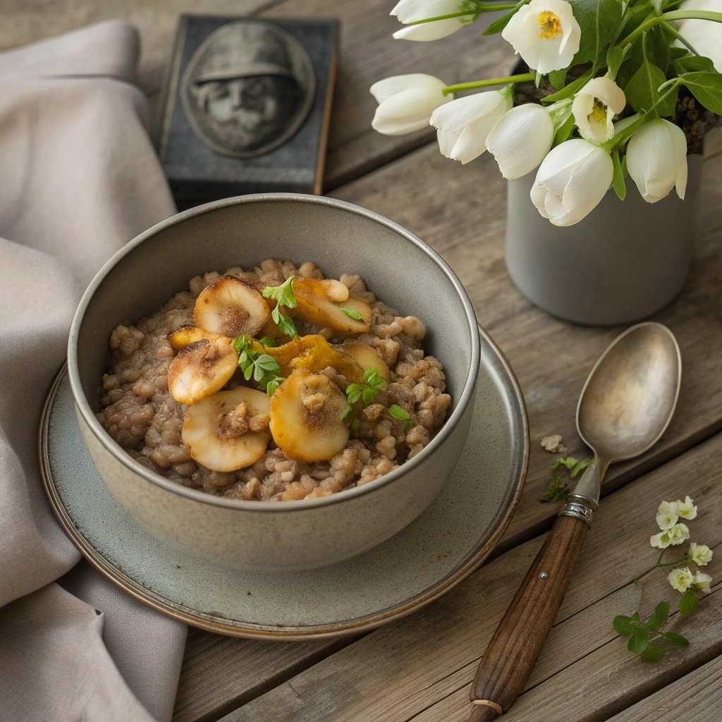 Почему именно каша? Потому что это была настоящая находка в трудные военные времена. Солдаты питались гречкой, перловкой и пшёнкой — тем, что было под рукой, щедро заправляя соусами и тушёнкой. Сегодня каша будет приготовлена иначе. Привносим новые идеи и возможности: даже без мясных добавок можно создать блюдо, от которого сердце разгорится от счастья.