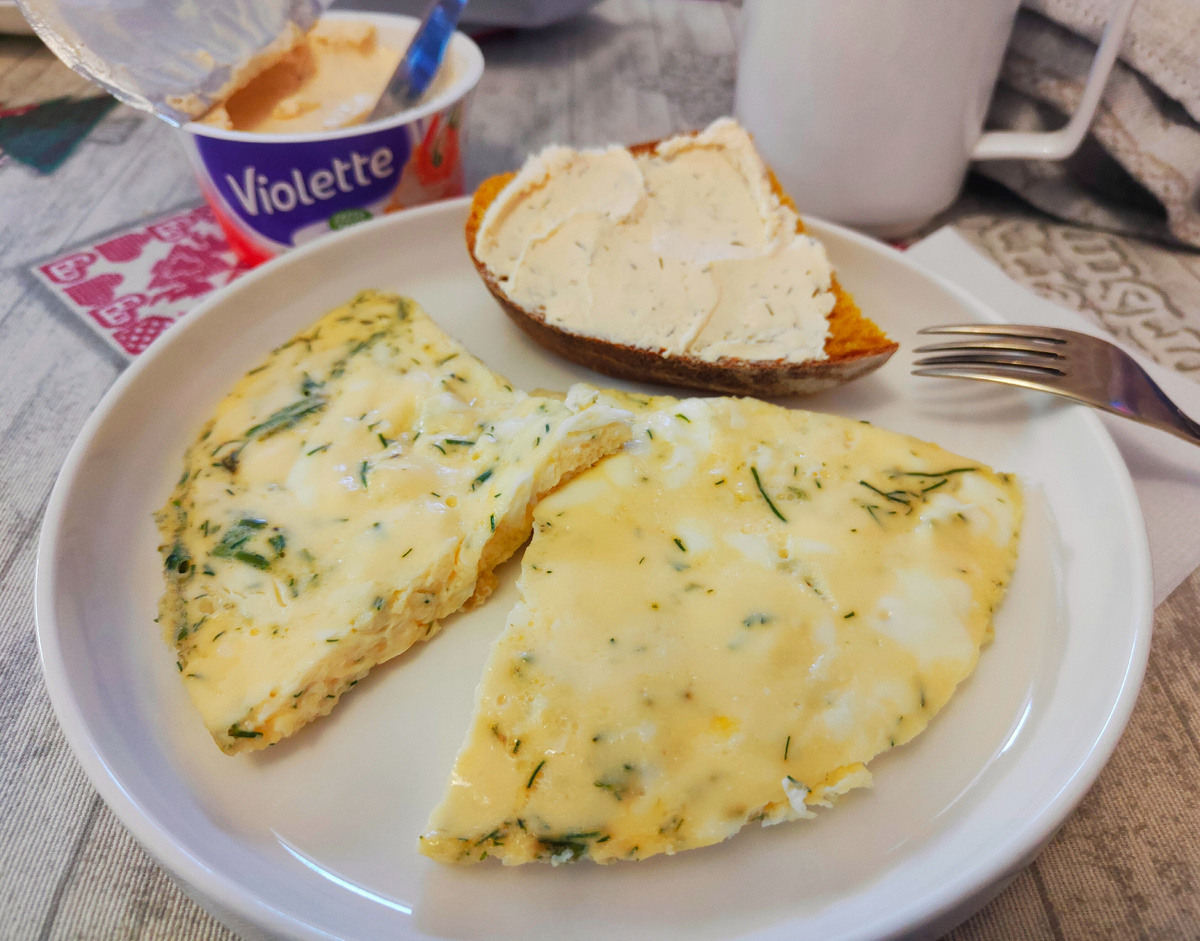 Завтрак начнется с омлета с укропом, ароматного бутерброда с творожным сыром и чашечки кофе. После этого стоит побаловать себя печеньем с лавандой – романтический десерт, который словно создан для этого сезона. Несмотря на небольшую оплошность с выпечкой, печенье все равно получилось мягким и ароматным.