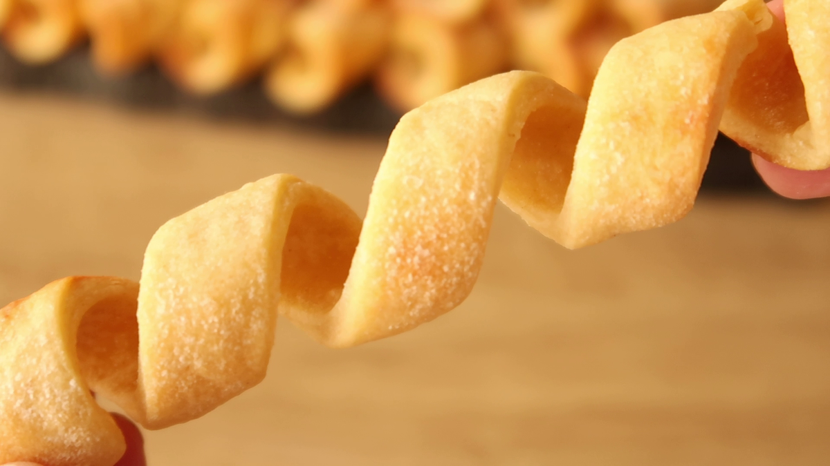 Формирование пружинок осуществляется с помощью металлических трубочек, используемых для круассанов. Для удобства лучше формировать трубочки на столе, чтобы избежать порывов теста. Накручиваем тесто на смазанные трубочки, после чего помещаем их в заранее разогретую до 180 градусов духовку.