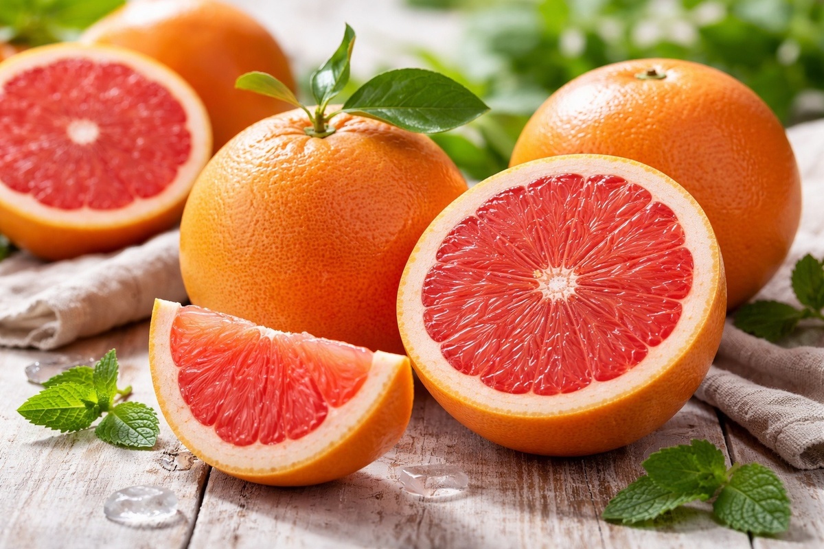 Грейпфрут богат витаминами: витамин C способствует укреплению иммунной системы, витамин A полезен для кожи и зрения, а калий позитивно влияет на работу сердца. Кроме того, клетчатка помогает улучшить пищеварение, а фермент нарингин ускоряет метаболизм, делая грейпфрут незаменимым элементом многих диет.