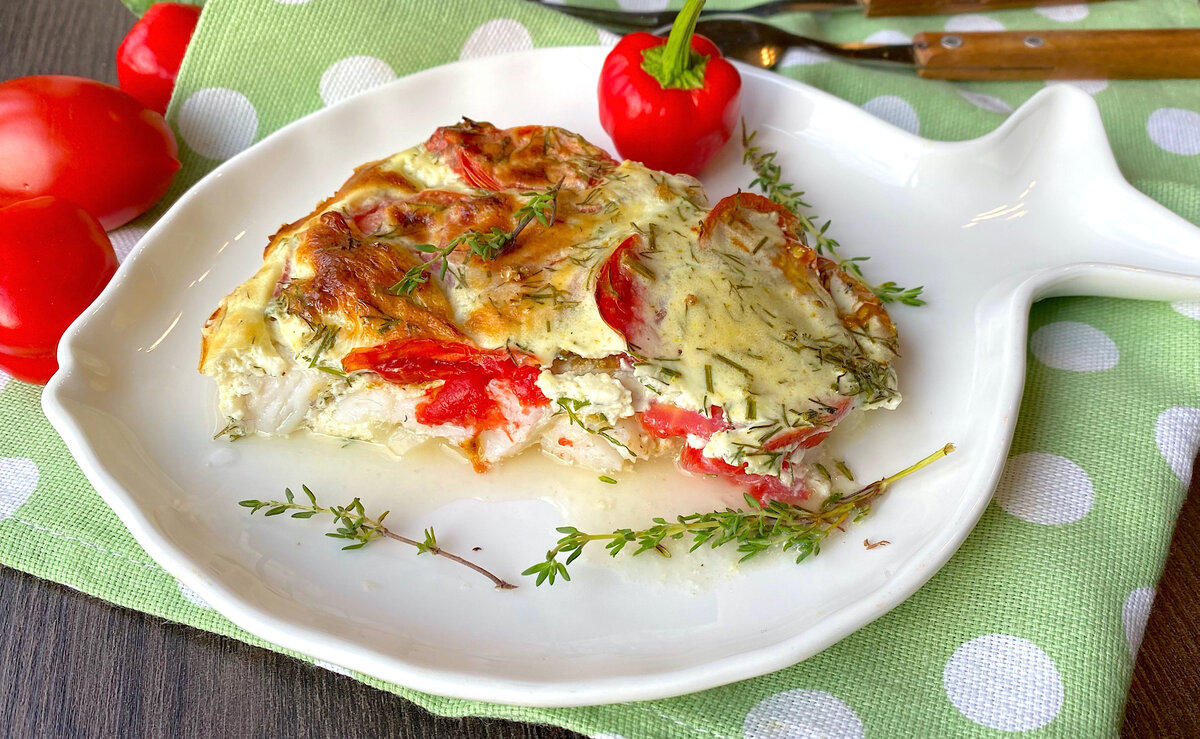 3. Помидоры нарезать кружочками и уложить поверх рыбы, если необходимо, посолить и поперчить.