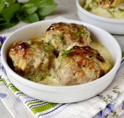 8. Запекайте куриные биточки в сливочном соусе еще 20-25 минут.
