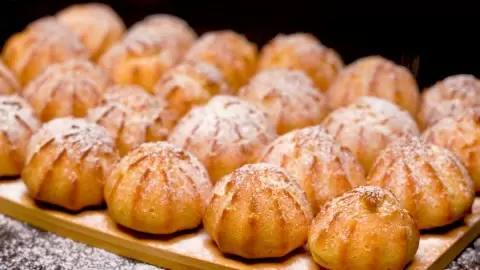 Секрет идеальной оболочки: после выпечки оставить профитроли в приоткрытой духовке на 5 минут. Это позволит лишней влаге уйти, а профитроли останутся легкими и воздушными.