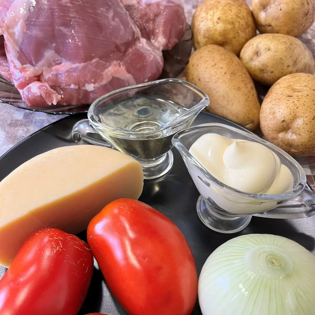 Шаг 1: Подготовка ингредиентов. Начните с очистки и нарезки картофеля на тонкие слайсы. Обязательно приправьте его солью, перцем и специями, затем добавьте растительное масло и хорошо перемешайте. Свинину нарежьте тонкими кусочками и также приправьте солью и перцем. Лук стоит нарезать полукольцами.