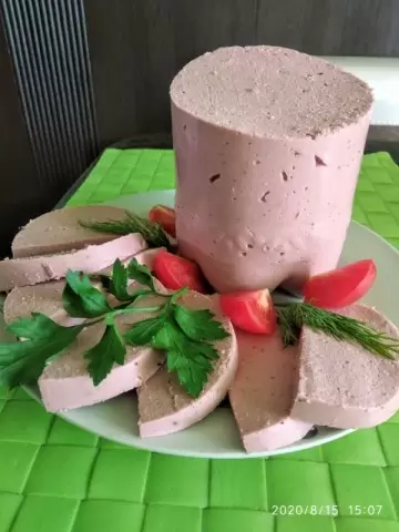 • После застывания освободите колбасу от бутылки и нарежьте.