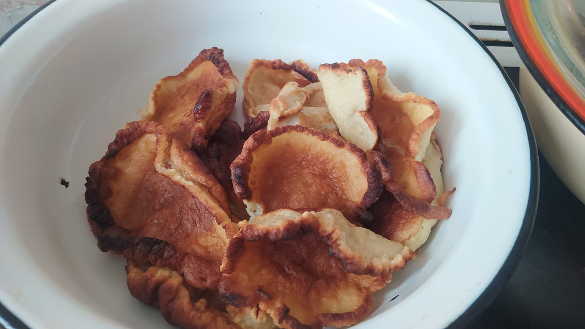 Не забывайте: для успеха важно использовать достаточно масла — по меньшей мере сантиметр. Это позволит оладьям равномерно «закрутиться» и придаст им характерную форму, напоминая грибы «пецица». Как только они зарумянятся с одной стороны, смело переворачивайте их.